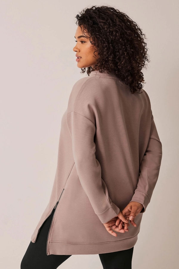 Büyük Beden Bisiklet Yaka Uzun Kollu Fermuar Detaylı Sweatshirt 615117