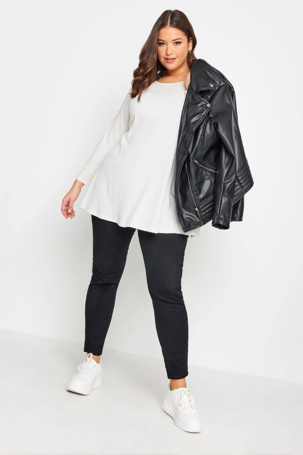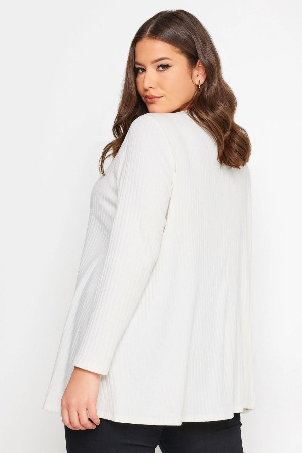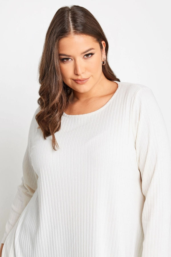 Büyük Beden Bisiklet Yaka Uzun Kollu Fitilli Kumaş Bluz 302724