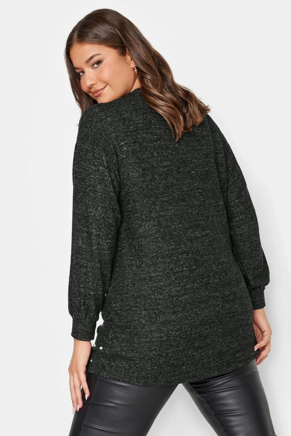 Büyük Beden Bisiklet Yaka Uzun Kollu İnci İşlemeli Bluz 302623