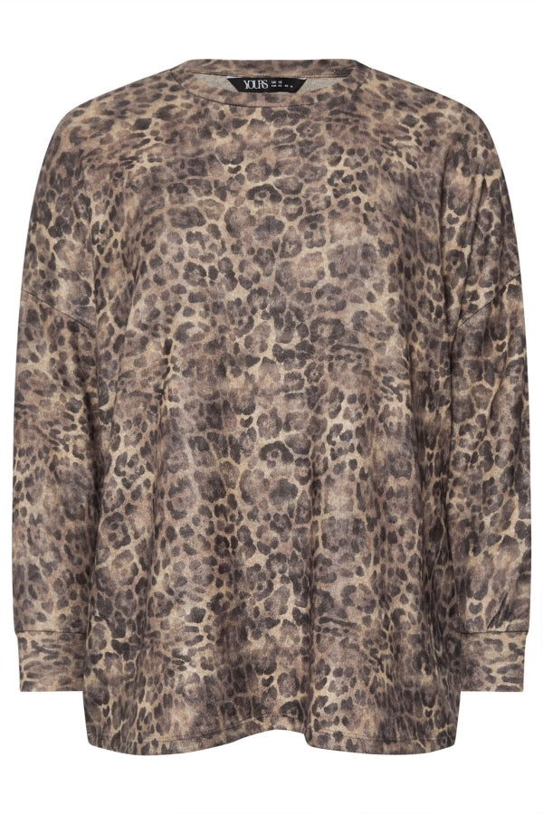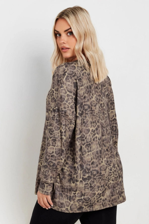 Büyük Beden Bisiklet Yaka Uzun Kollu Leopar Desenli Bluz 322185