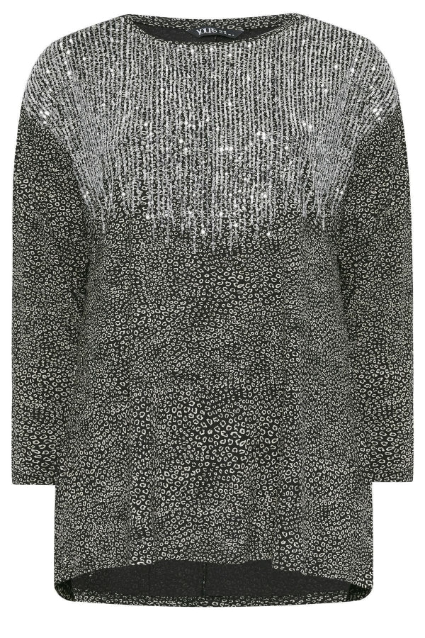 Büyük Beden Bisiklet Yaka Uzun Kollu Payet İşlemeli Bluz 302857