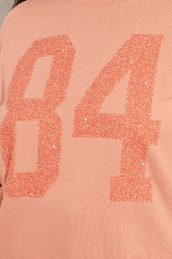 Büyük Beden Bisiklet Yaka Uzun Kollu Payet İşlemeli Sweatshirt 303142
