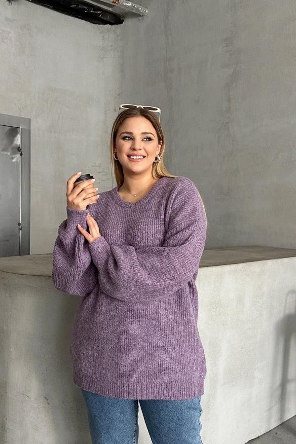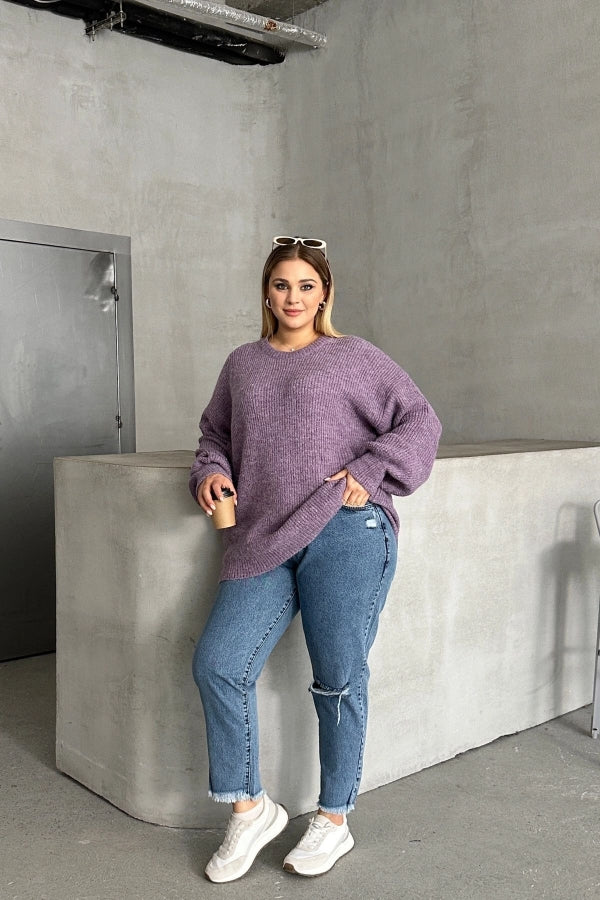 Büyük Beden Bisiklet Yaka Uzun Kollu Triko Kazak 301440