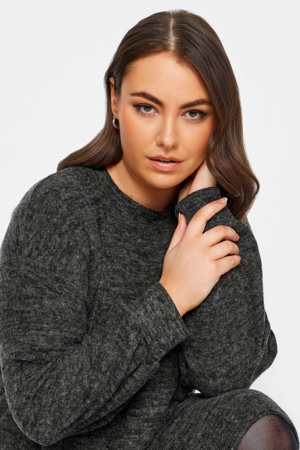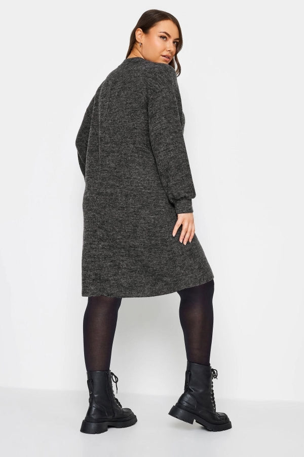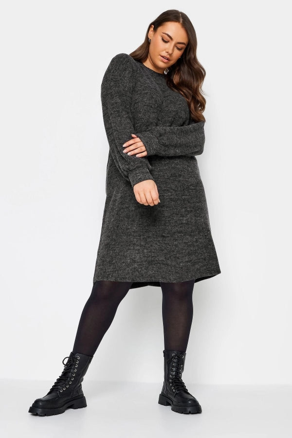 Büyük Beden Bisiklet Yaka Uzun Kollu Yumuşak Dokulu Elbise 321598