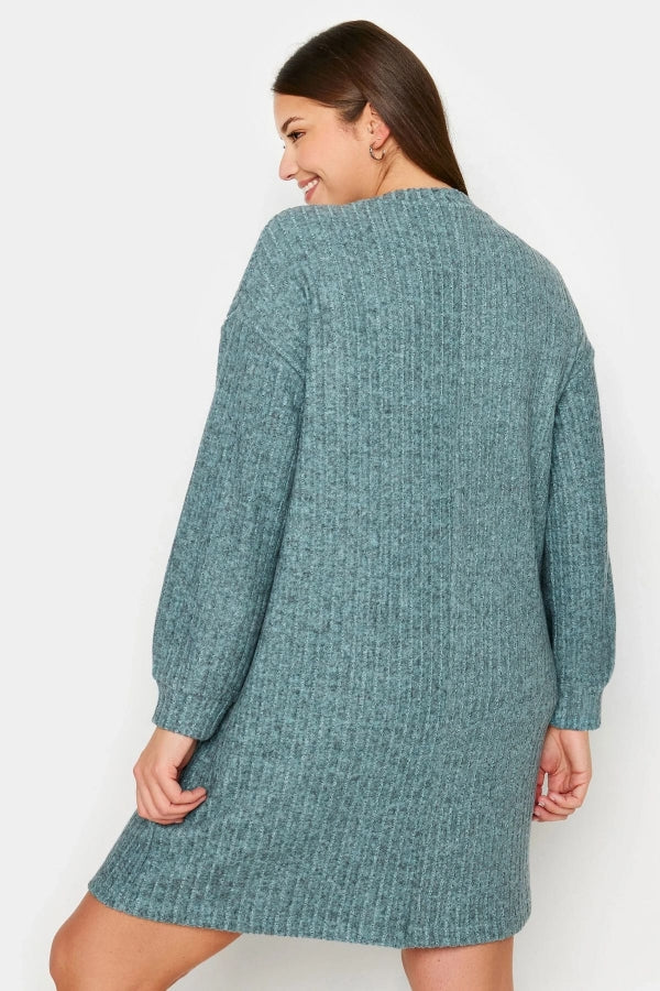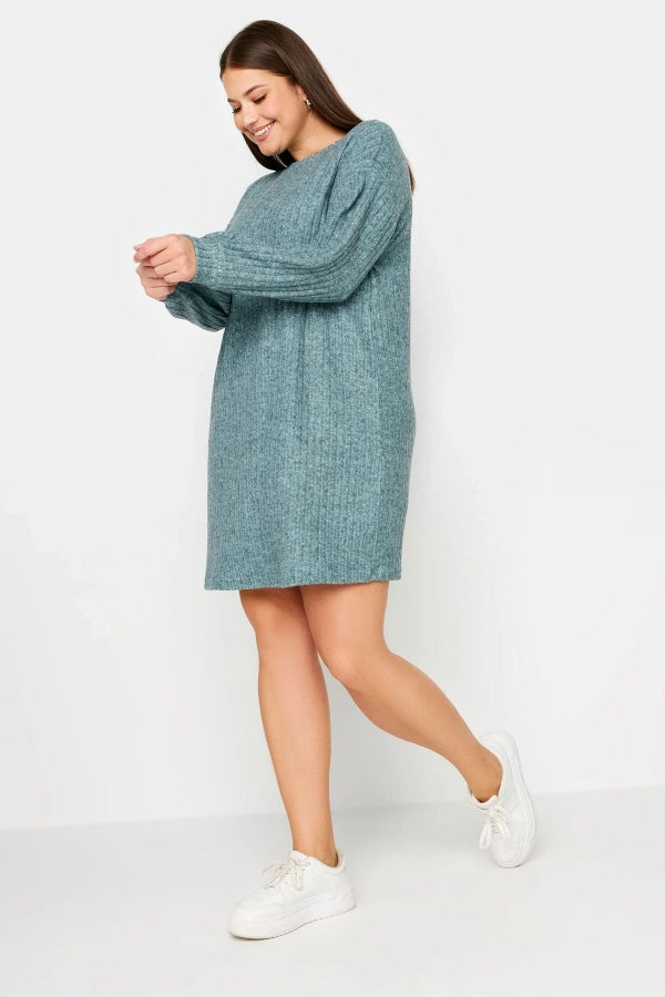 Büyük Beden Bisiklet Yaka Uzun Kollu Yumuşak Dokulu Kazak Elbise 303237