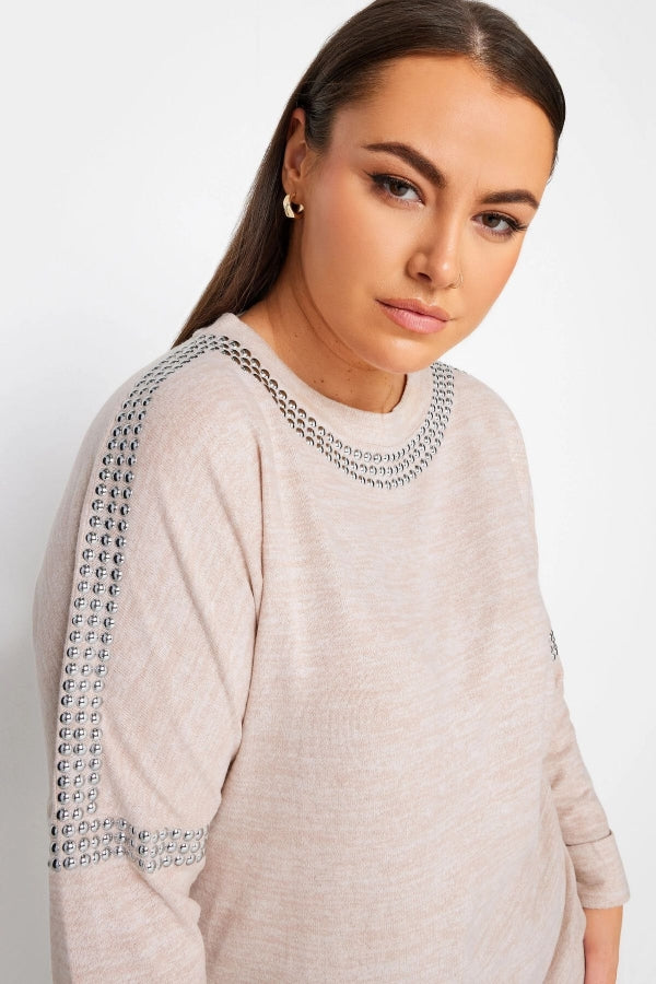 Büyük Beden Bisiklet Yaka Uzun Kollu Zımba Detaylı Kazak 285032