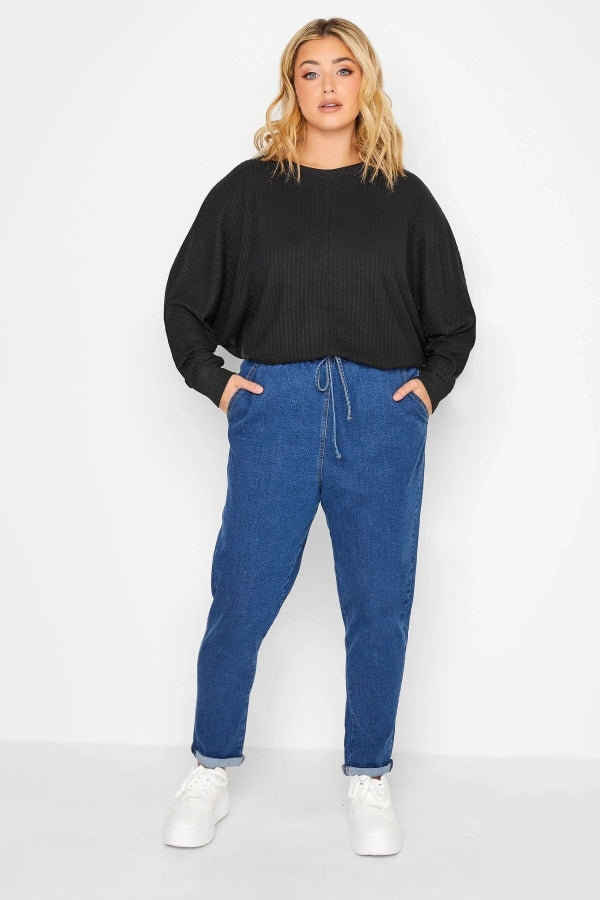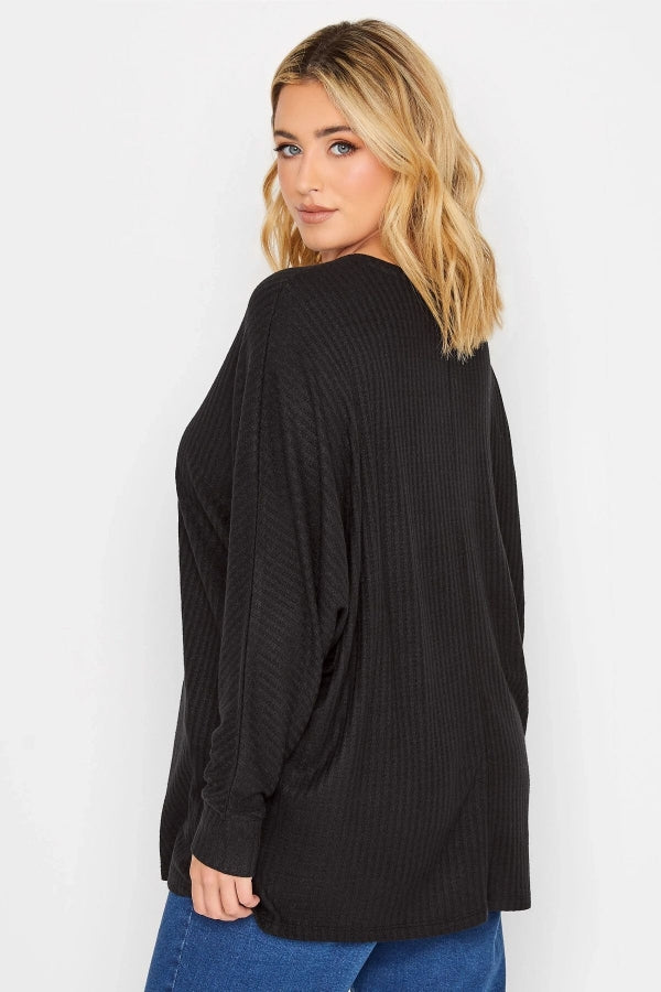 Büyük Beden Bisiklet Yaka Uzun Yarasa Kol İnce Bluz 301724