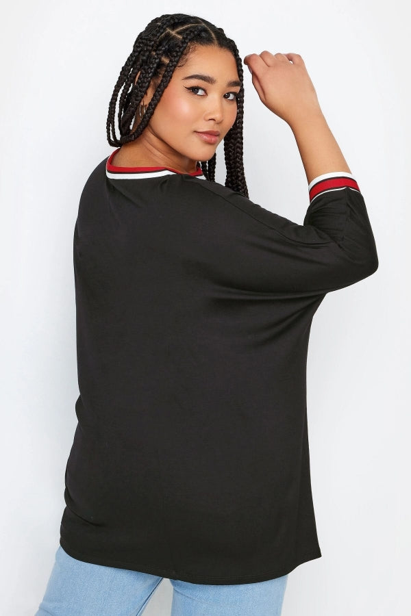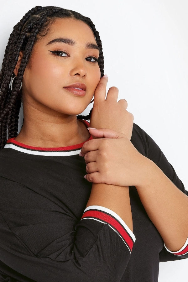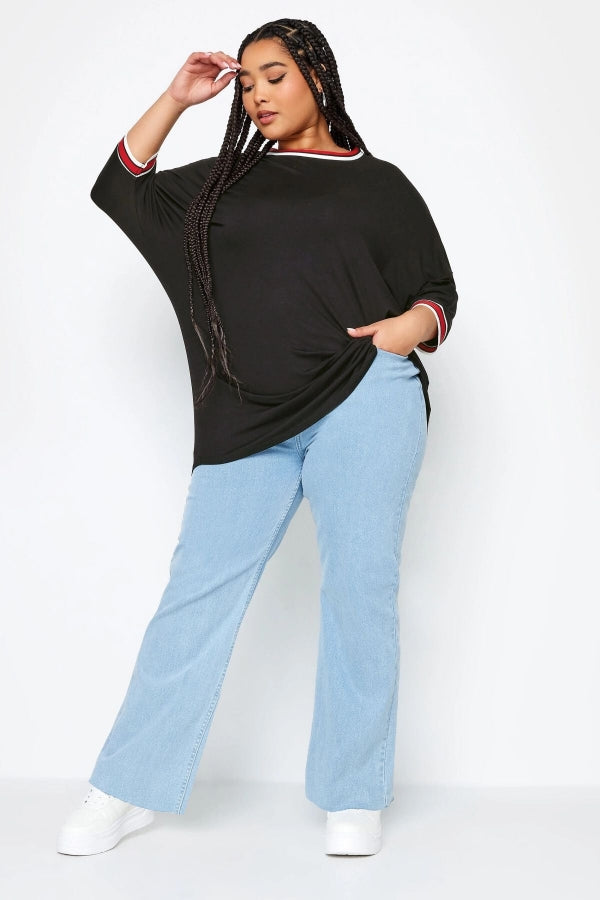 Büyük Beden Bisiklet Yaka Yarasa Kol Şerit Detaylı Bluz 302656