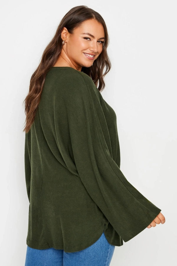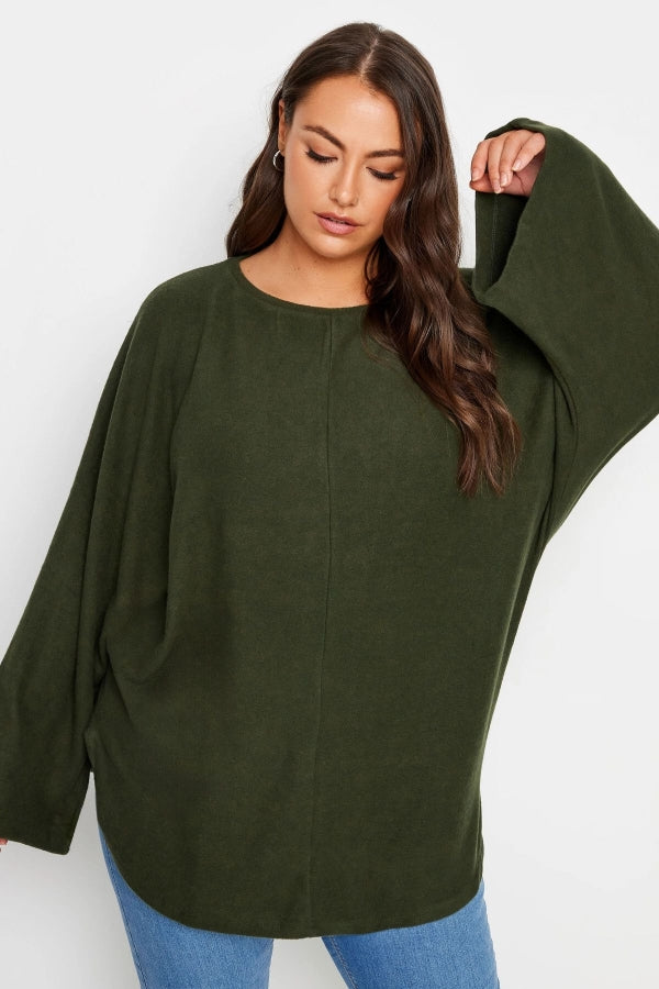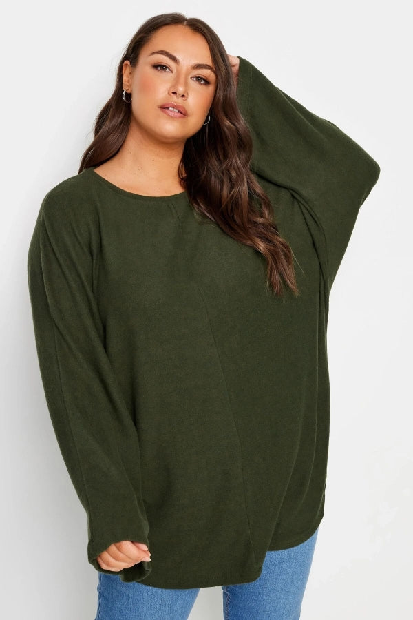 Büyük Beden Bisiklet Yaka Yarasa Kollu Yumuşak Dokulu Örme Bluz 303388