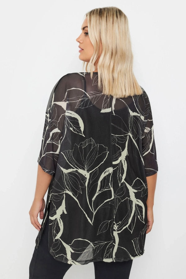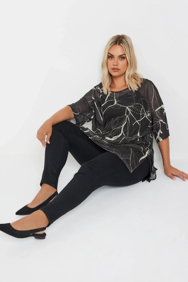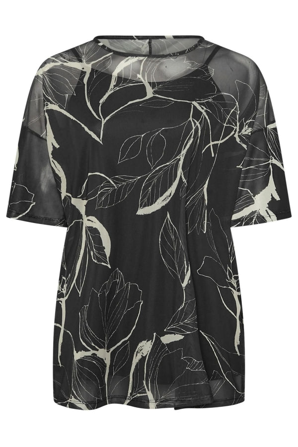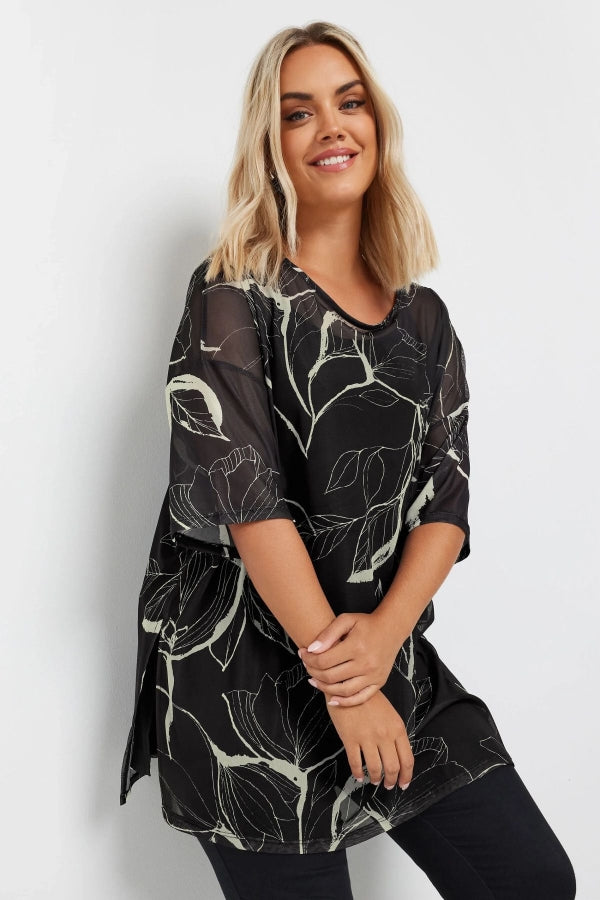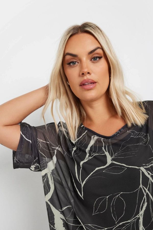 Büyük Beden Bisiklet Yaka Yarım Kollu Desenli Astarlı Bluz 303447