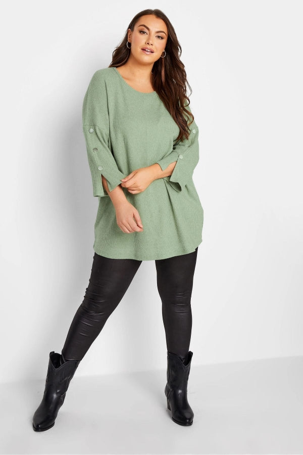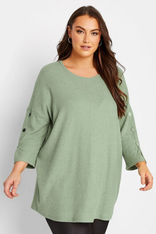 Büyük Beden Bisiklet Yaka Yarım Kollu Düğme Detaylı Bluz 301701
