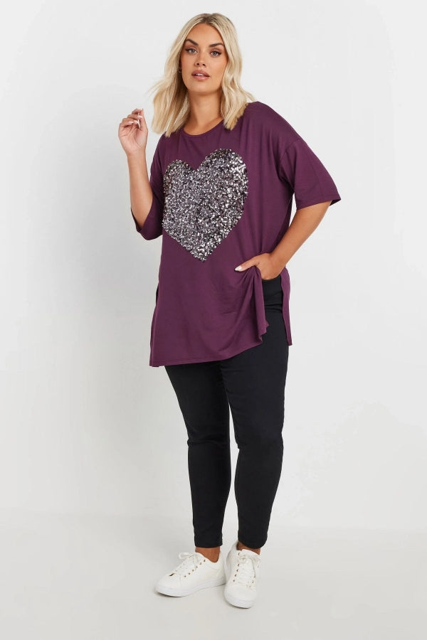 Büyük Beden Bisiklet Yaka Yarım Kollu Payet Süslemeli Yırtmaçlı Bluz 303541