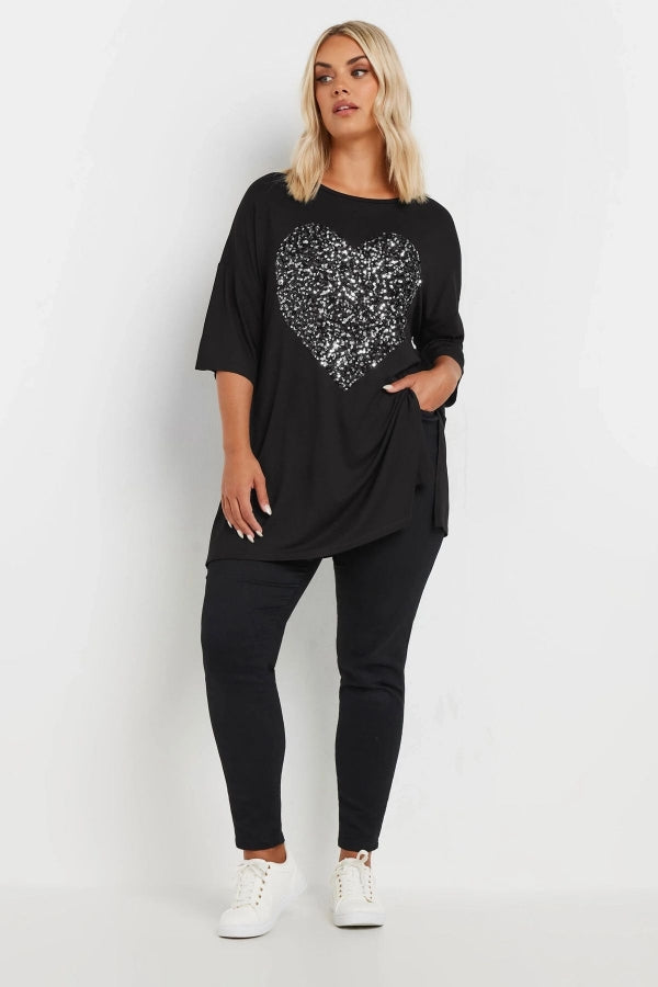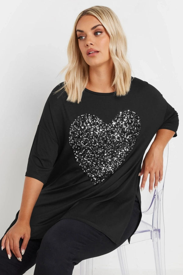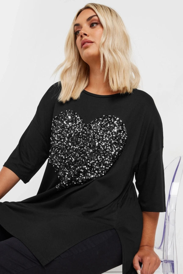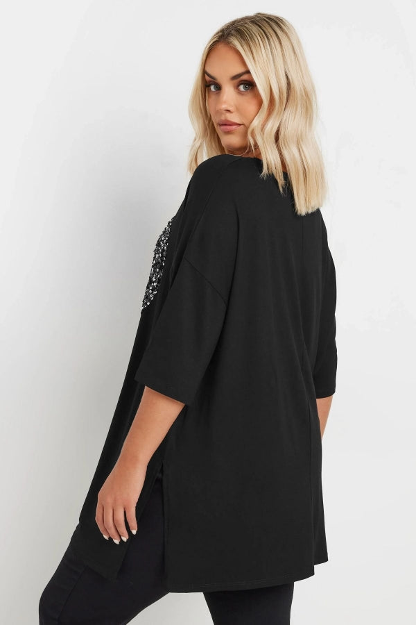 Büyük Beden Bisiklet Yaka Yarım Kollu Payet Süslemeli Yırtmaçlı Bluz 303542
