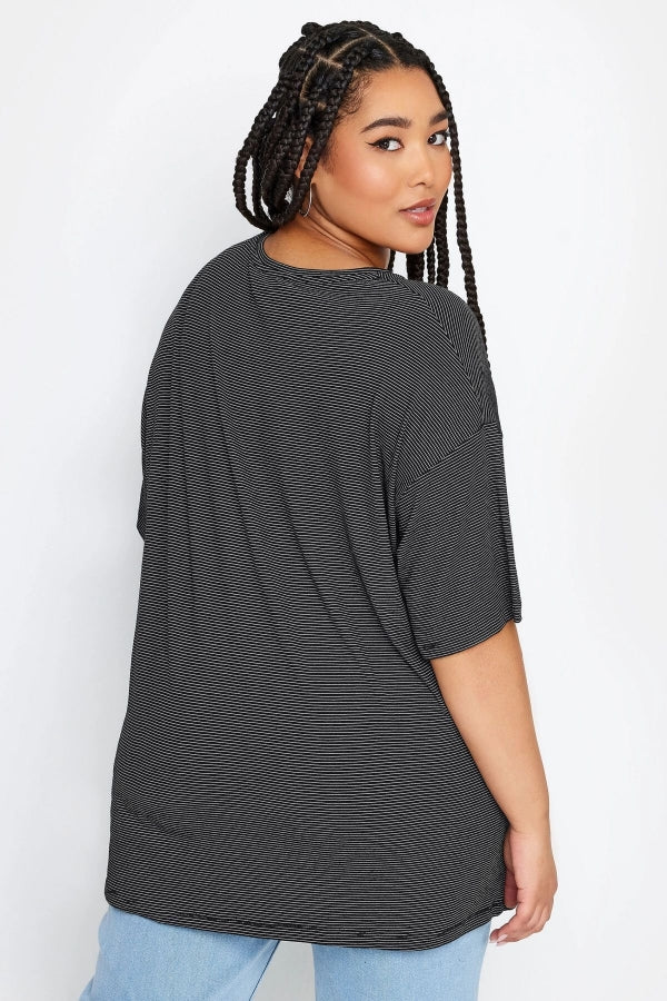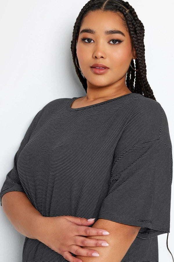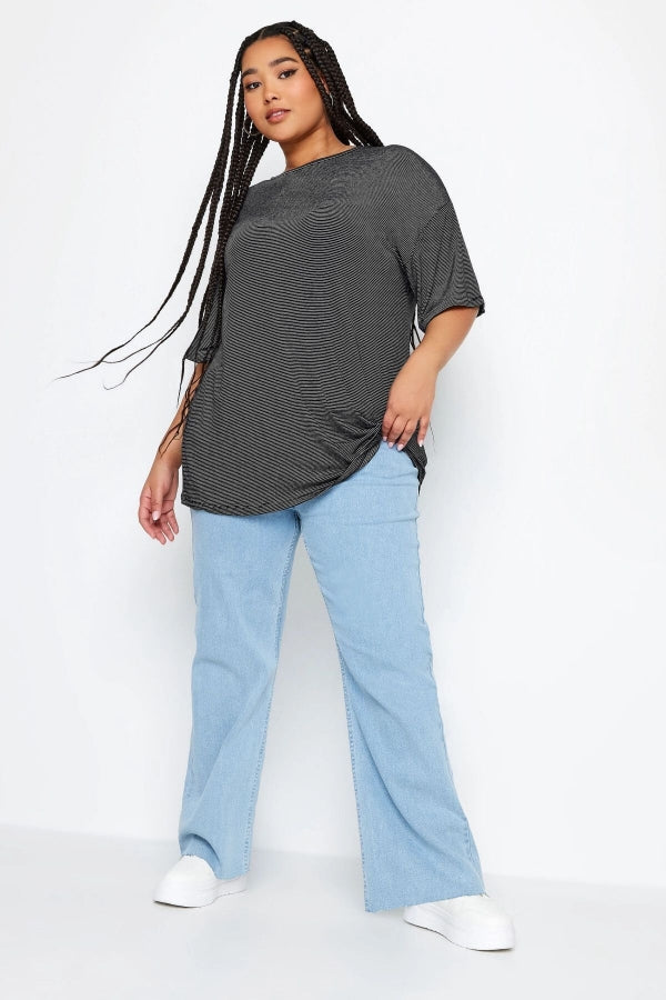 Büyük Beden Bisiklet Yaka Yarım Kollu Uzun Kesim T-shirt 302545