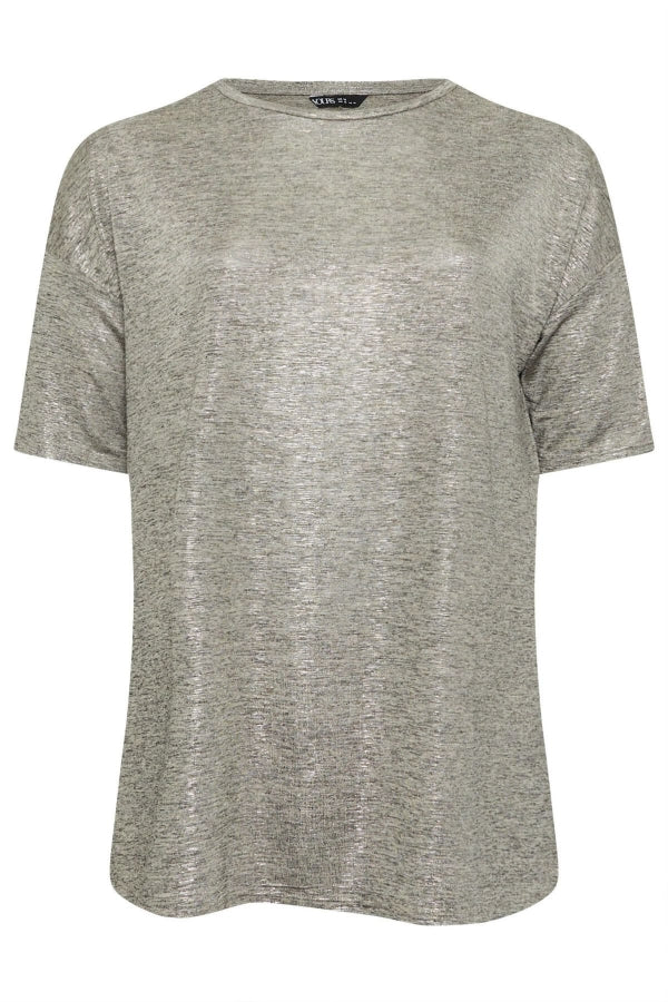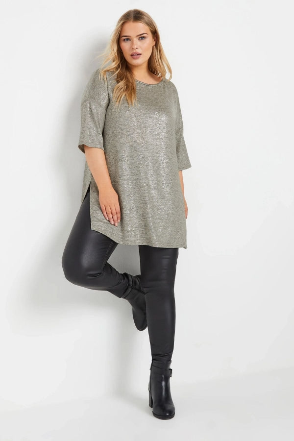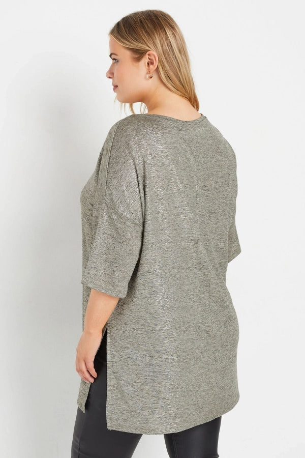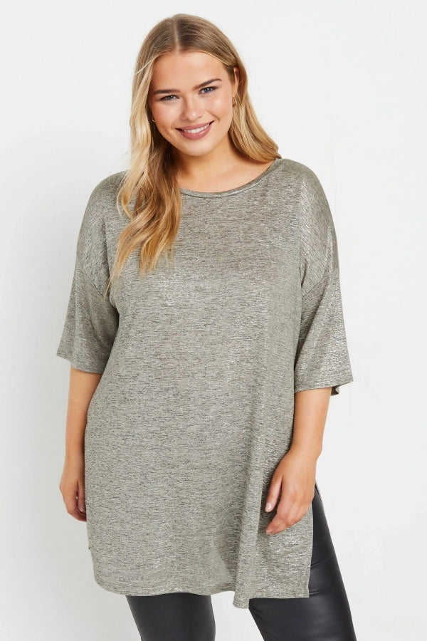 Büyük Beden Bisiklet Yaka Yarım Kollu Yırtmaçlı Parlak Görünümlü Bluz 303613