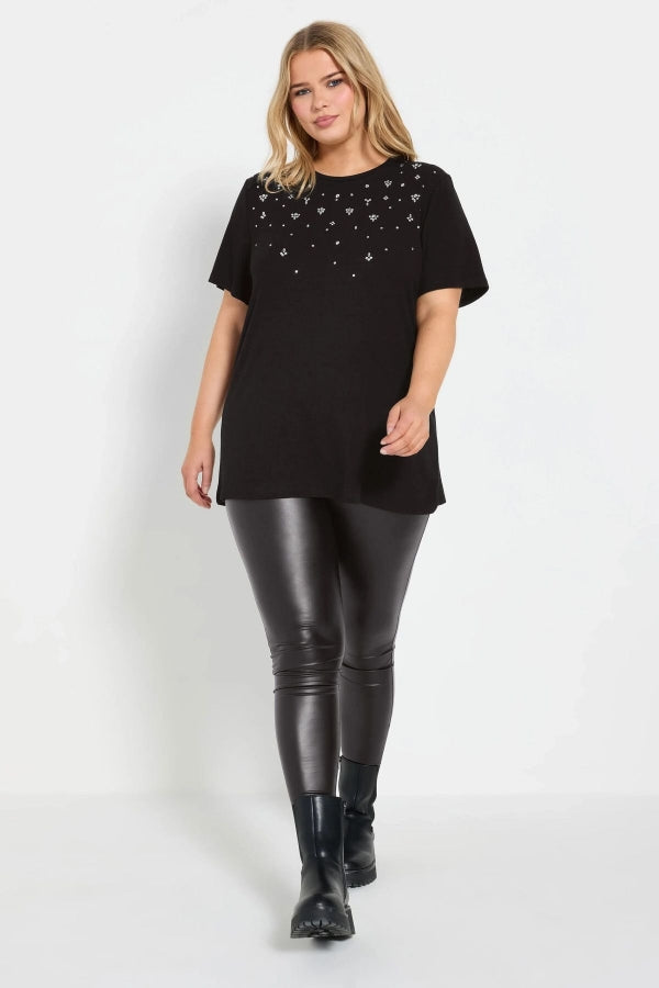Büyük Beden Bisiklet Yakası Taş İşlemeli Kısa Kollu T-shirt 322283