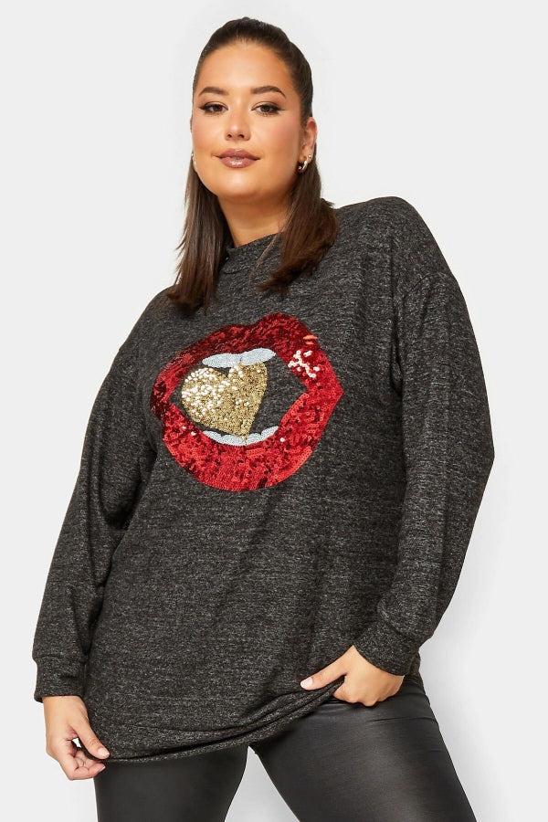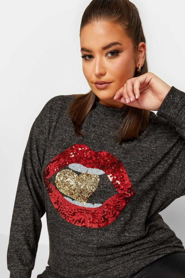 Büyük Beden Boğazlı Uzun Kollu Payet Detaylı Yumuşak Dokulu Bluz 301519