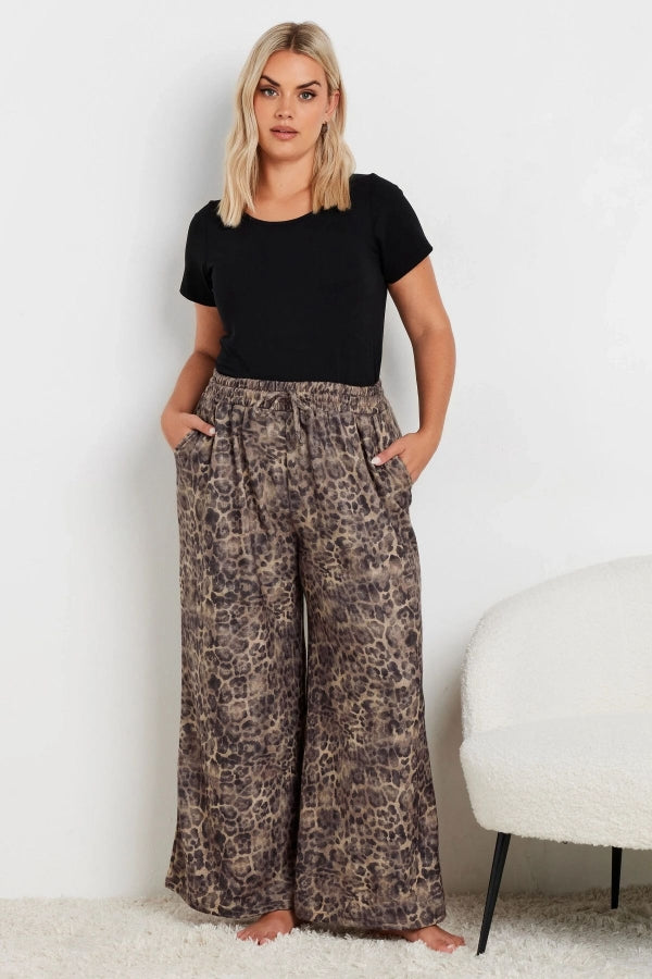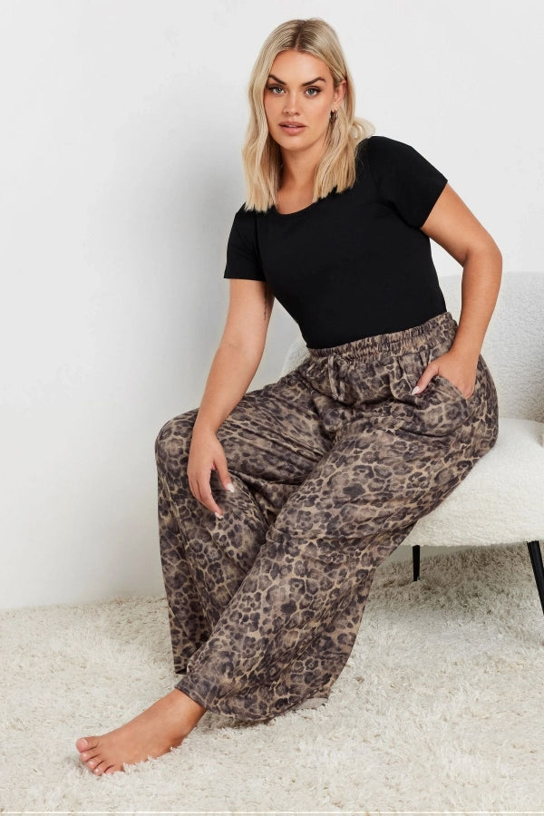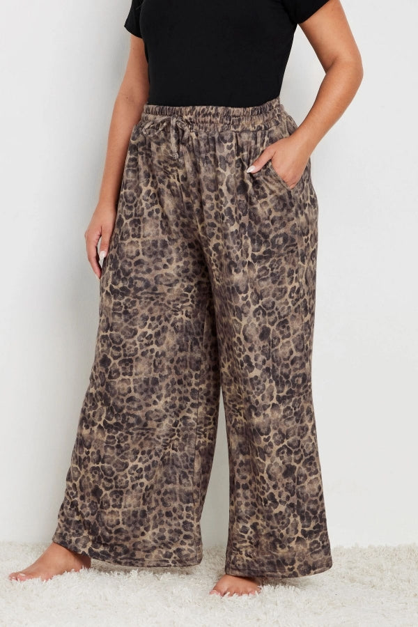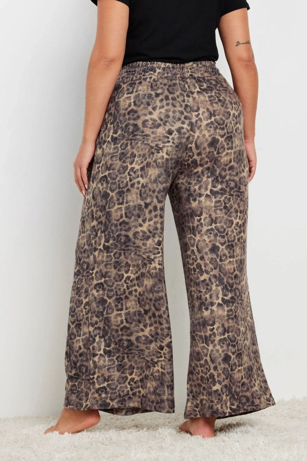 Büyük Beden Bol Paça Cepli Leopar Desenli Beli Lastikli Eşofman Altı 322193
