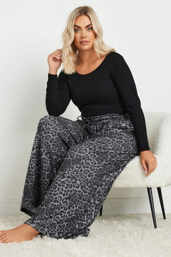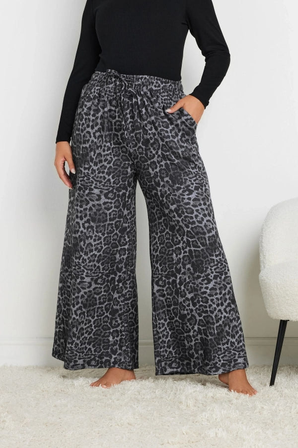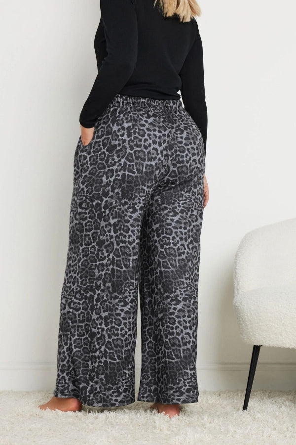 Büyük Beden Bol Paça Cepli Leopar Desenli Beli Lastikli Eşofman Altı 322356
