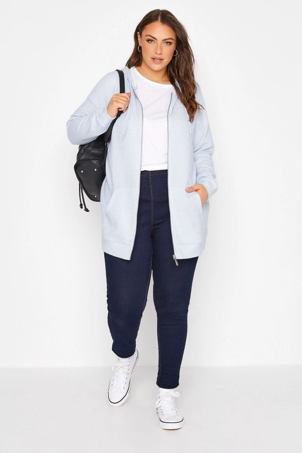 Büyük Beden Boydan Fermuarlı Cepli Kapüşonlu Uzun Kollu Sweatshirt 173416