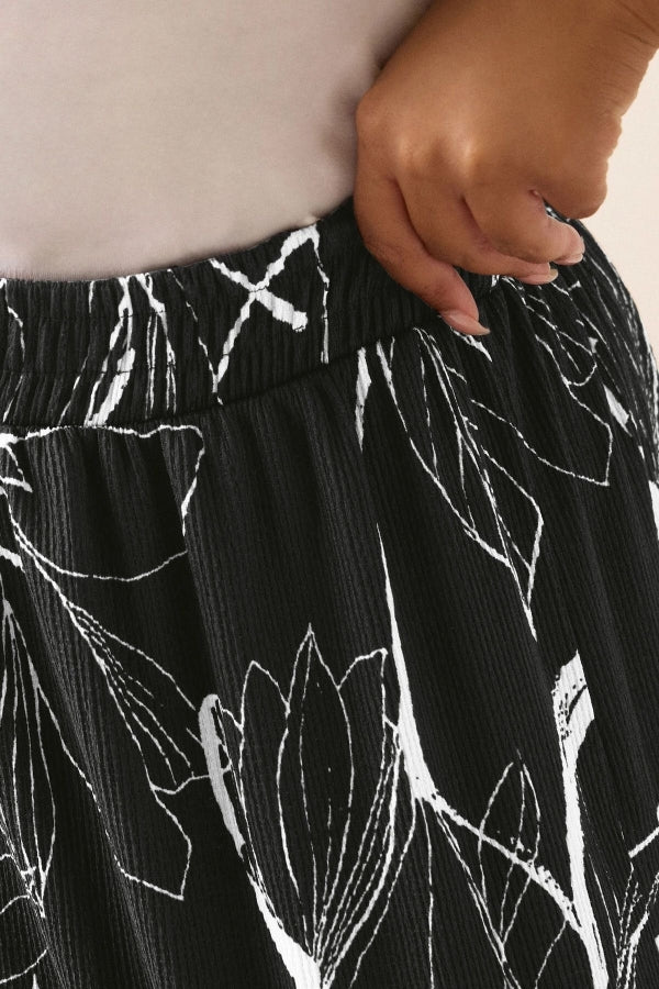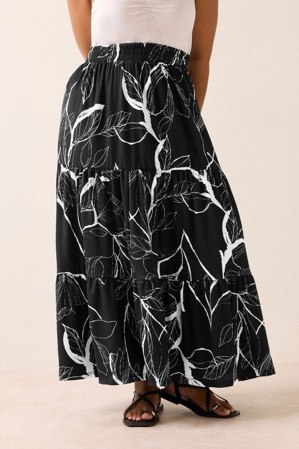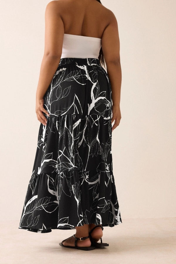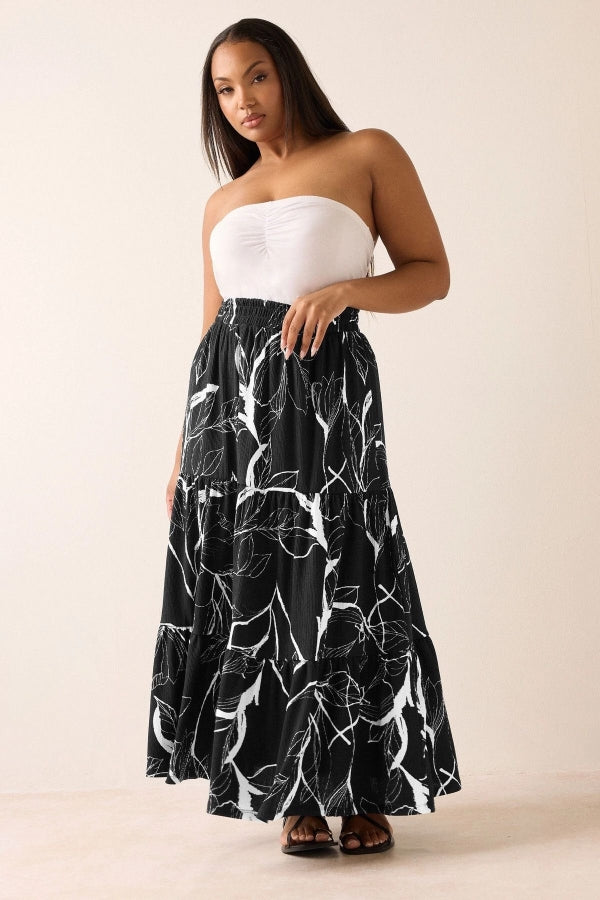 Büyük Beden Bürümcük Kumaş Çiçek Desenli Beli Lastikli Etek 304235