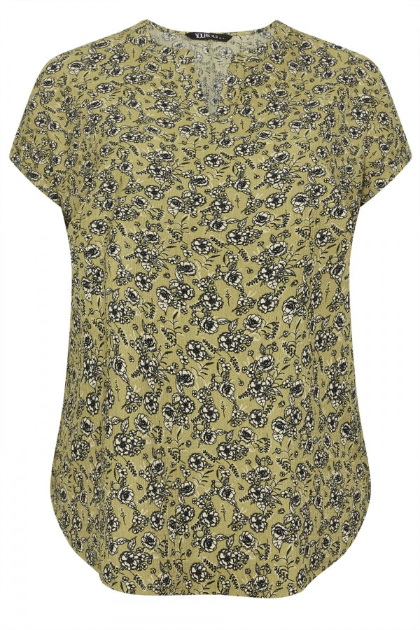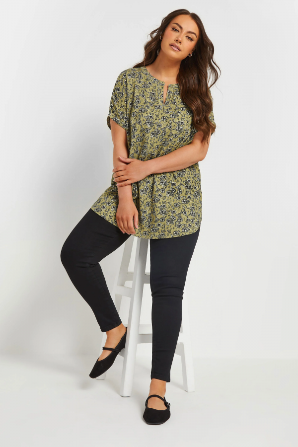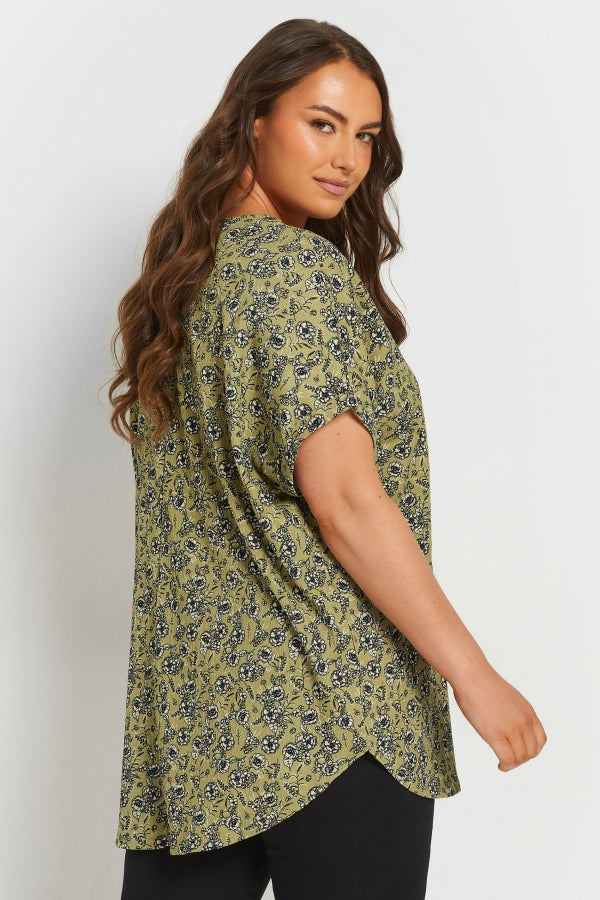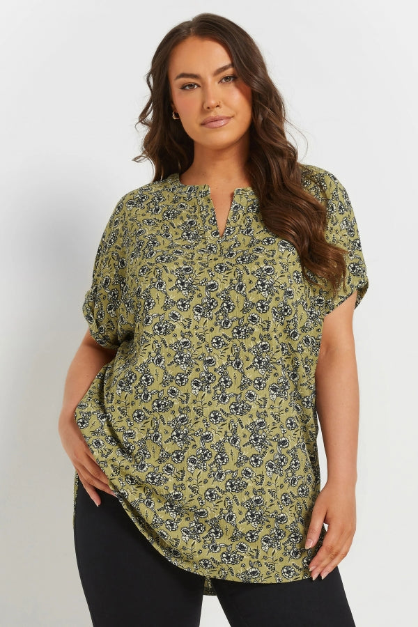 Büyük Beden Çentik Yaka Kısa Kollu Eteği Asimetrik Kesim Desenli Bluz 303867