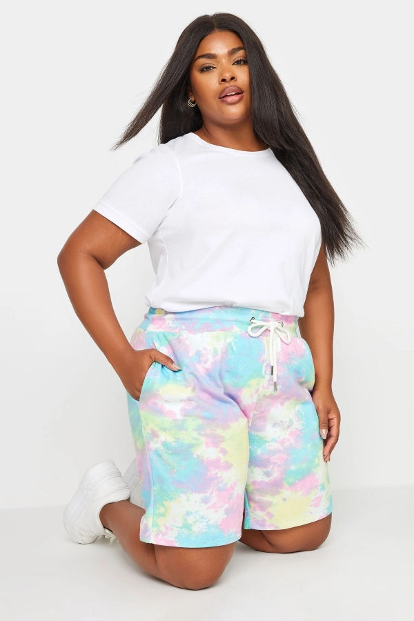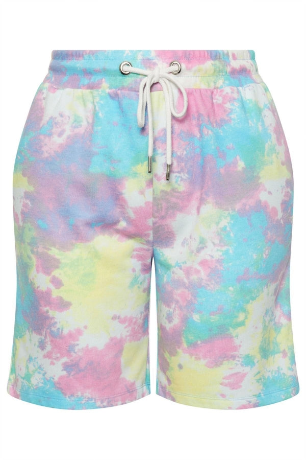 Büyük Beden Cepli Beli Büzgülü Bol Kesim Batik Desenli Şort 303208