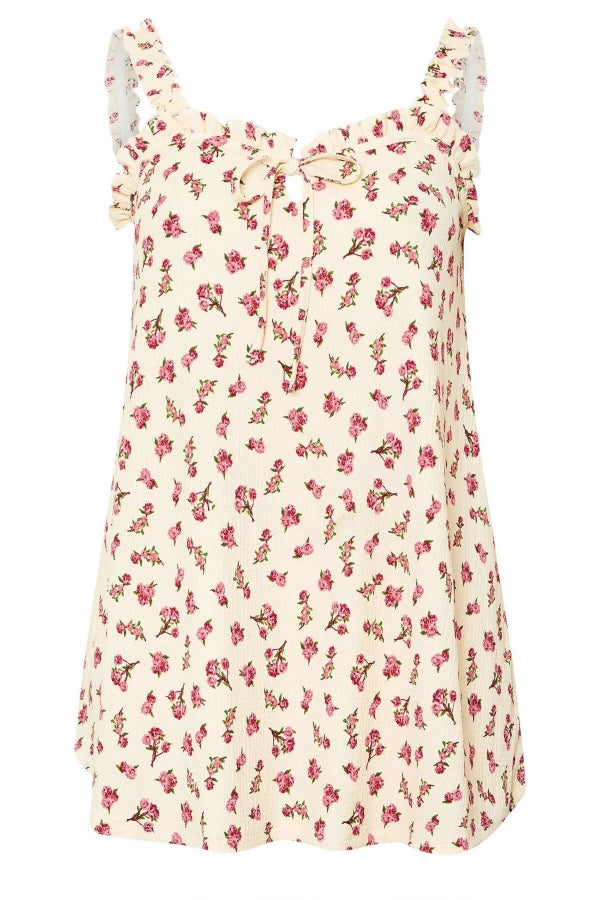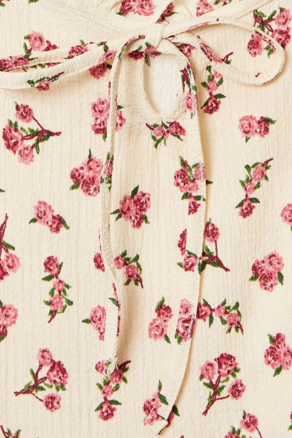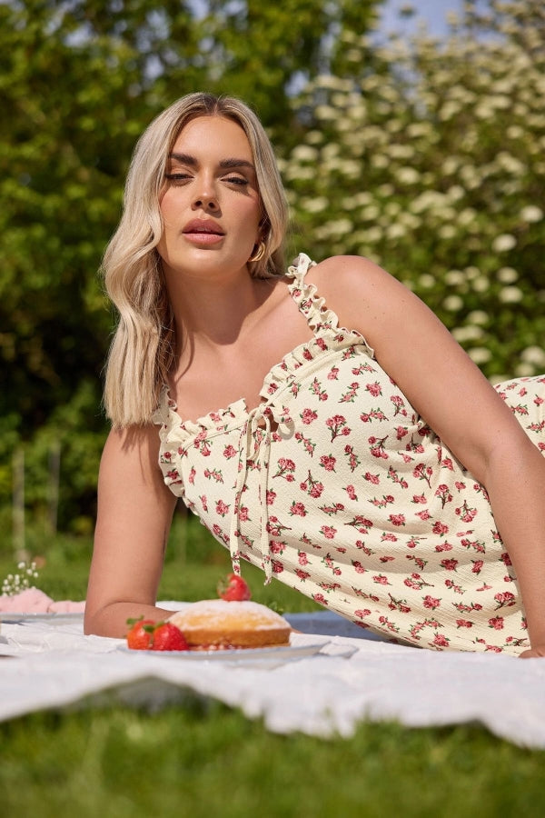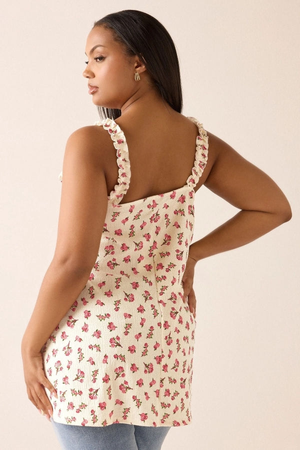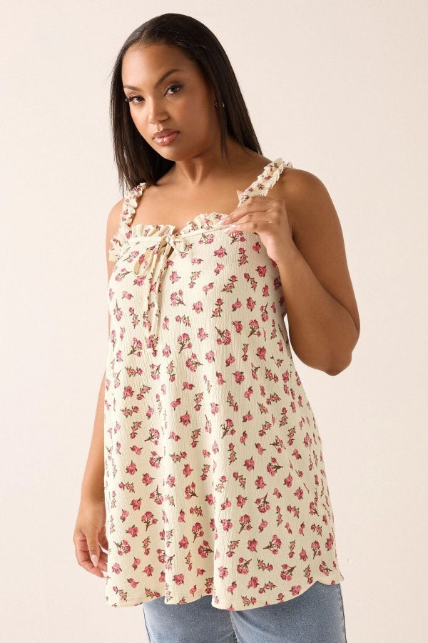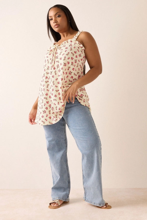 Büyük Beden Çiçek Desenli Bürümcük Kumaş Kare Yaka Kolsuz Bluz 322688