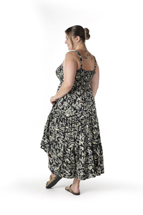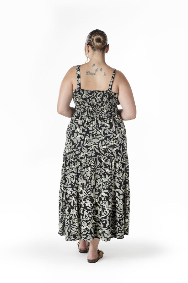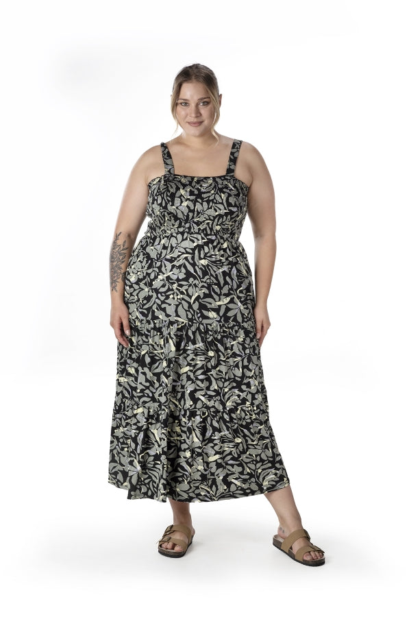 Büyük Beden Çiçek Desenli Kalın Askılı Beli Lastikli Elbise T-81