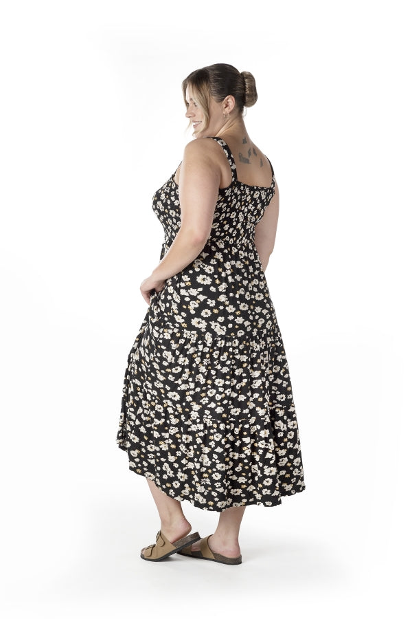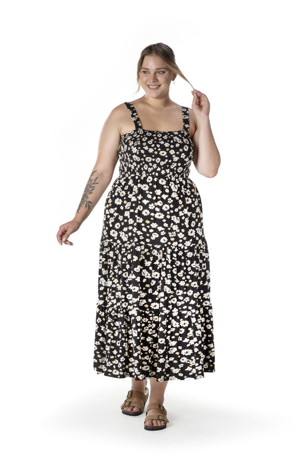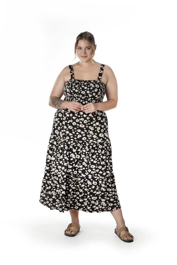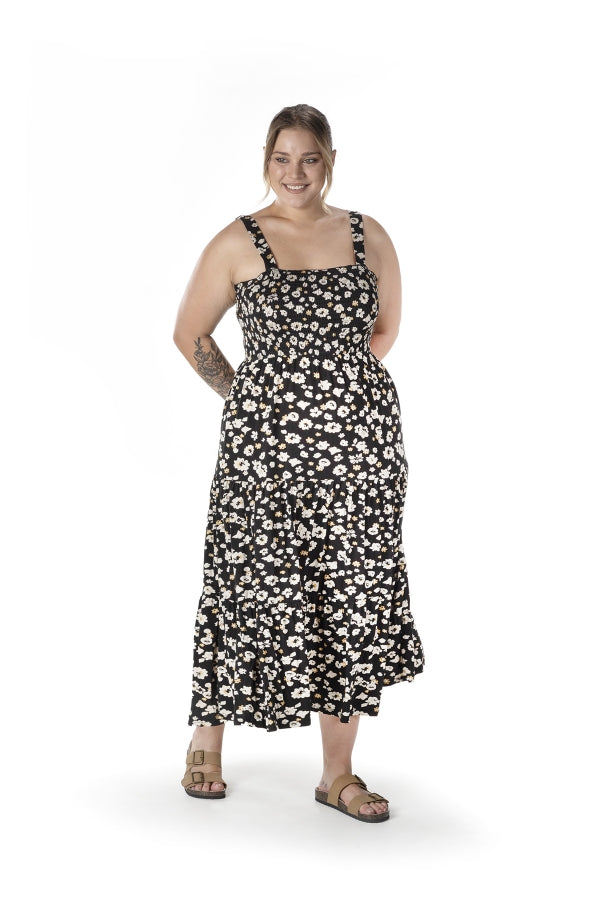 Büyük Beden Çiçek Desenli Kalın Askılı Beli Lastikli Elbise T-83