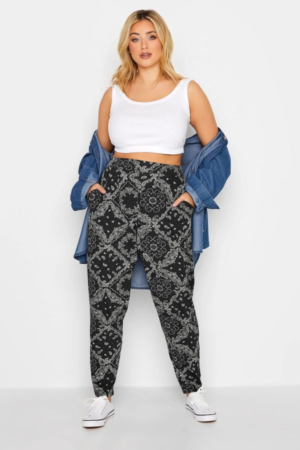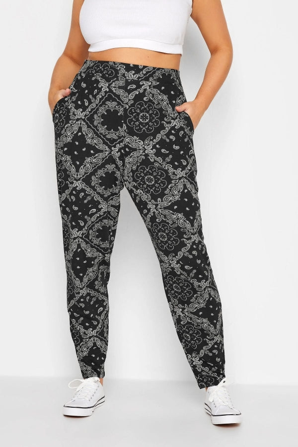 Büyük Beden Dar Paça Desenli Cepli Havuç Kesim Likralı Pantolon 143292