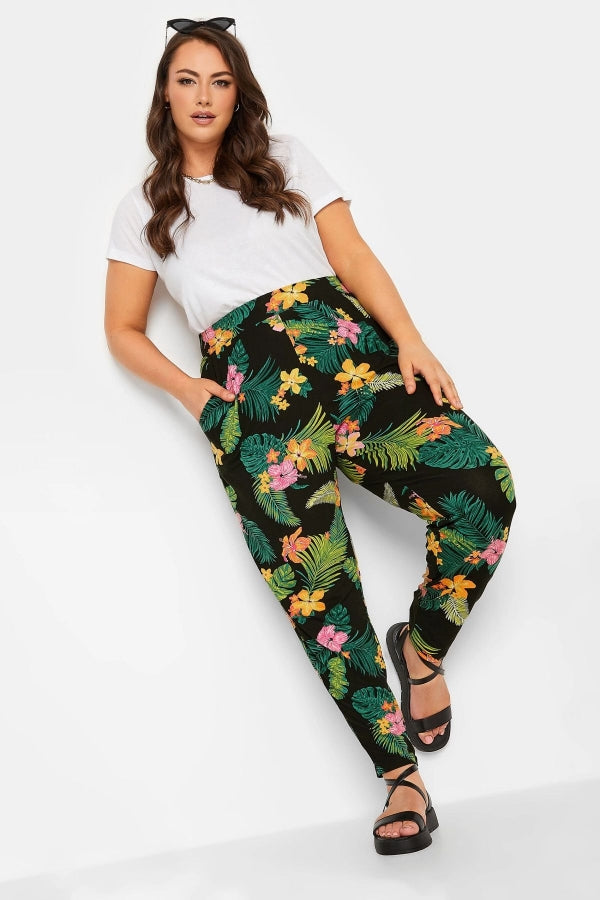 Büyük Beden Dar Paça Desenli Cepli Havuç Kesim Likralı Pantolon 143447