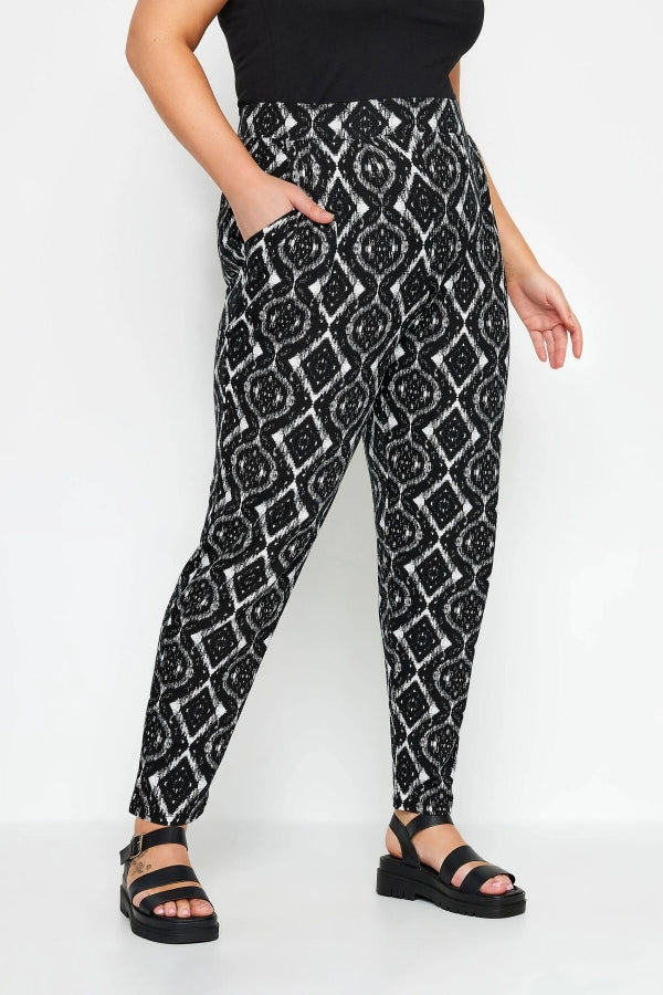 Büyük Beden Dar Paça Desenli Cepli Havuç Kesim Likralı Pantolon 143732