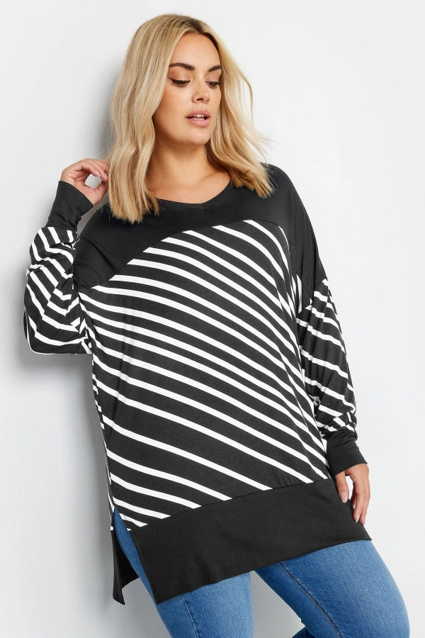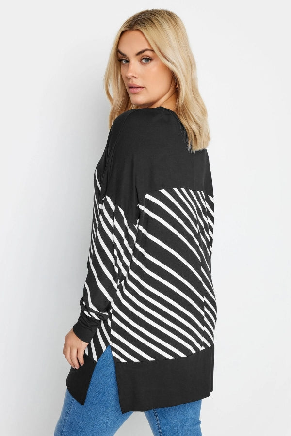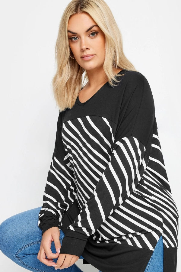 Büyük Beden Desenli Esnek Kumaş Uzun Kollu Uzun Kesim Bluz 303056