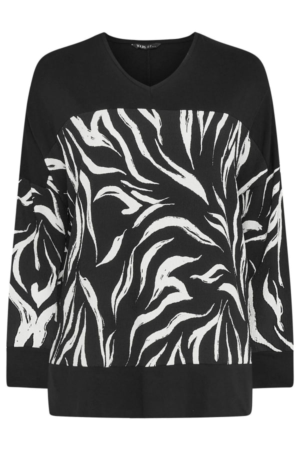Büyük Beden Desenli Esnek Kumaş Uzun Kollu Uzun Kesim Bluz 303057