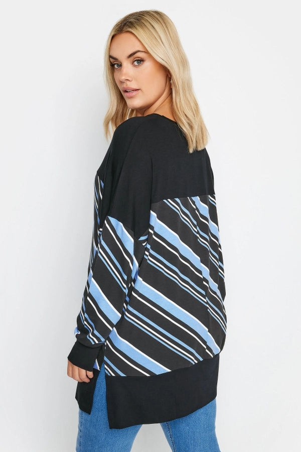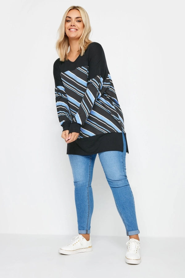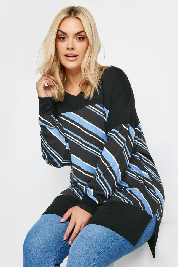 Büyük Beden Desenli Esnek Kumaş Uzun Kollu Uzun Kesim Bluz 303058