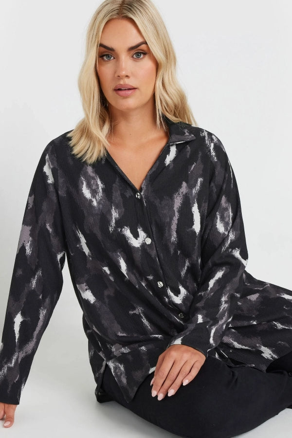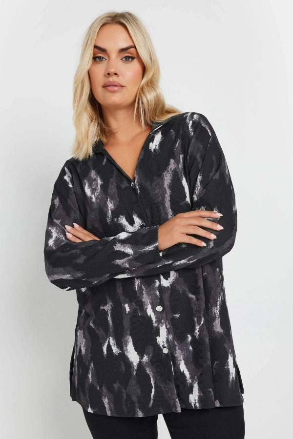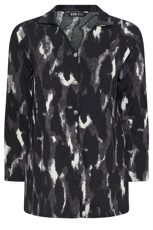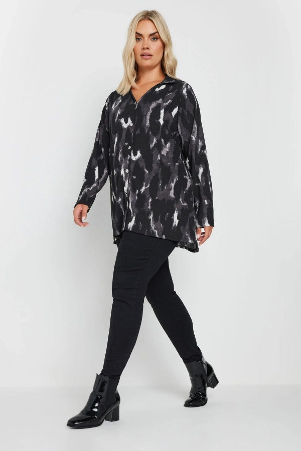 Büyük Beden Desenli V Yaka Önü Düğmeli Uzun Kollu Gömlek 322165