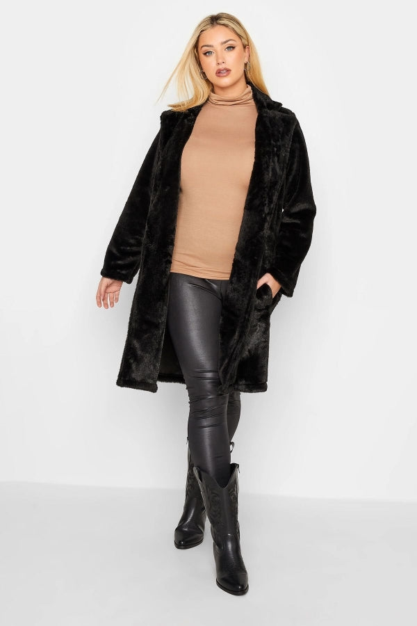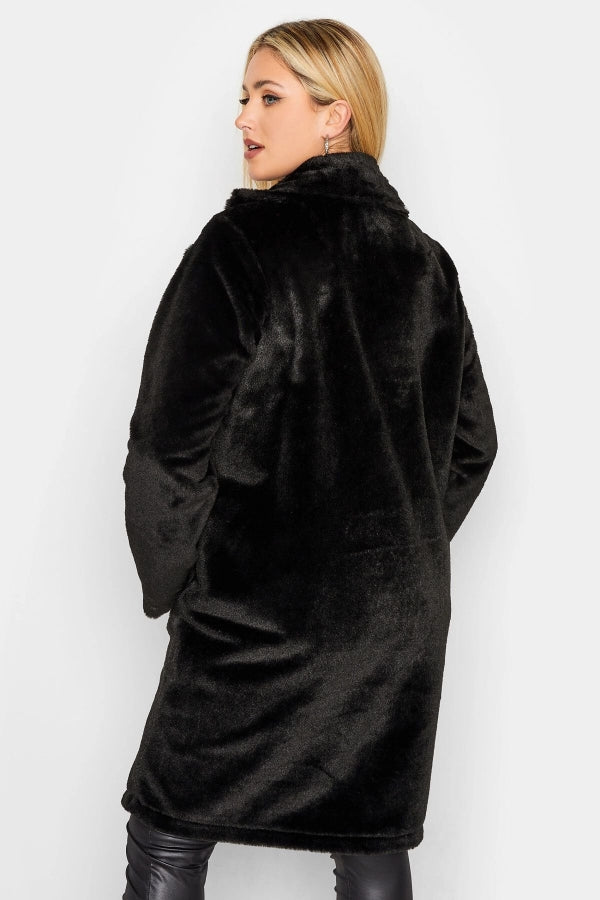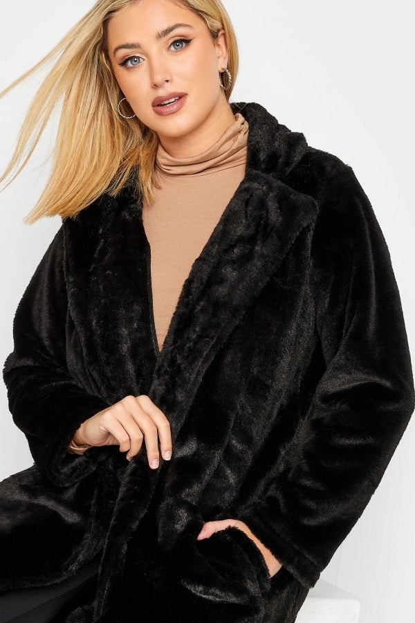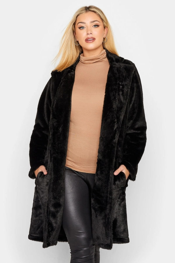 Büyük Beden Düğmeli Cepli Uzun Kesim Suni Kürk Ceket 301581