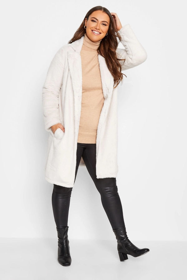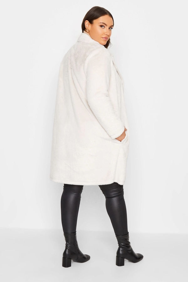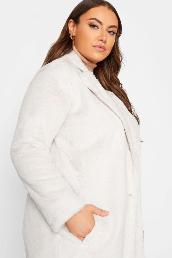 Büyük Beden Düğmeli Cepli Uzun Kesim Suni Kürk Ceket 301583