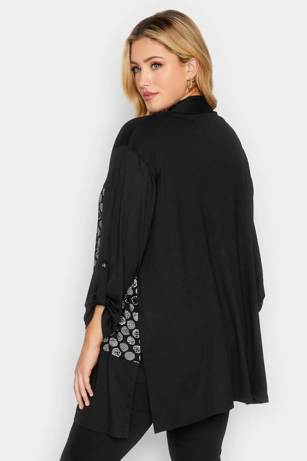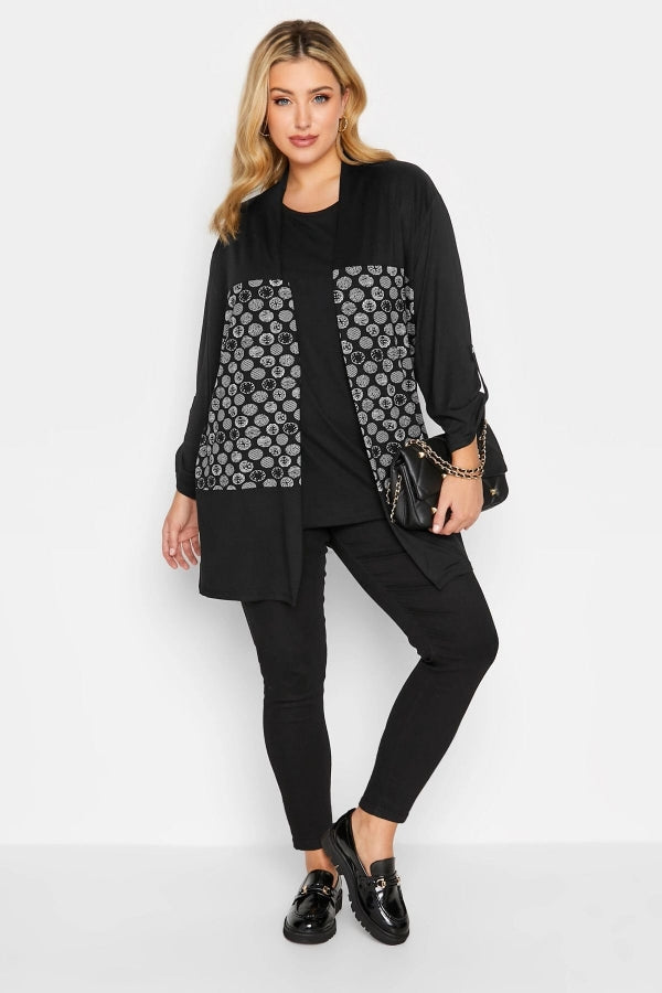 Büyük Beden Düğmesiz Desenli Uzun Kol Düğme Detaylı Hırka 301317