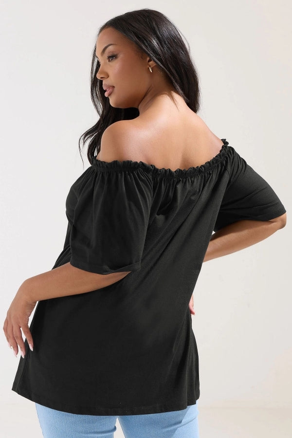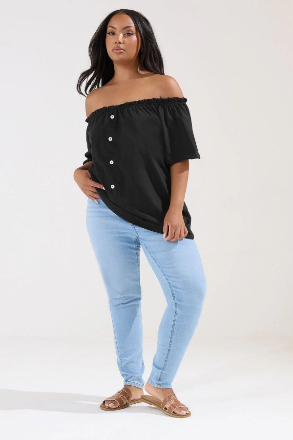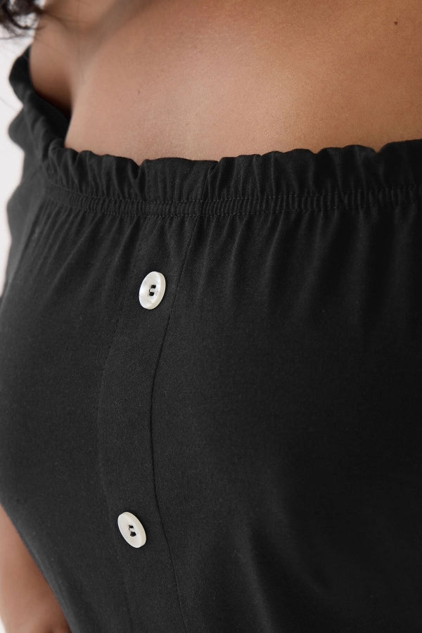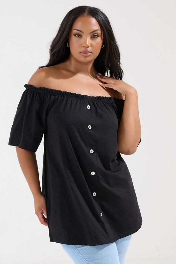 Büyük Beden Düşük Omuz Düğme Detaylı Straplez Bluz 322704