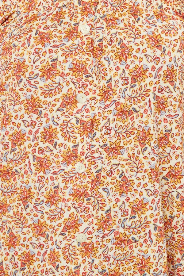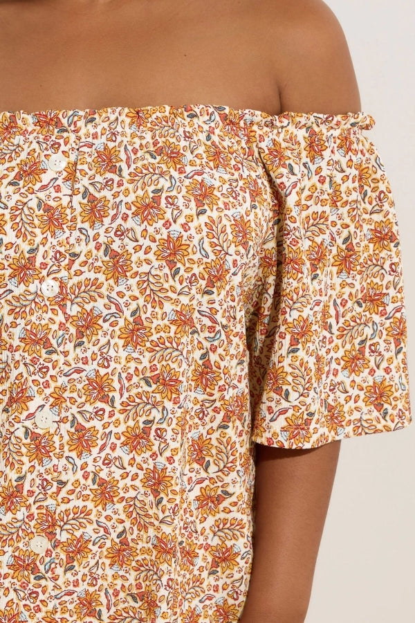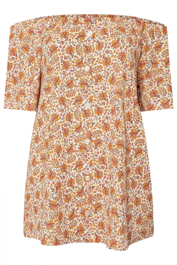 Büyük Beden Düşük Omuzlu Kısa Kollu Düğme Detaylı Desenli Bluz 322680