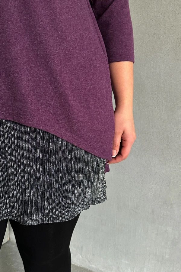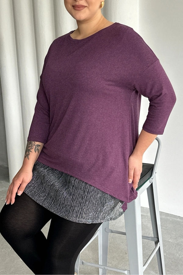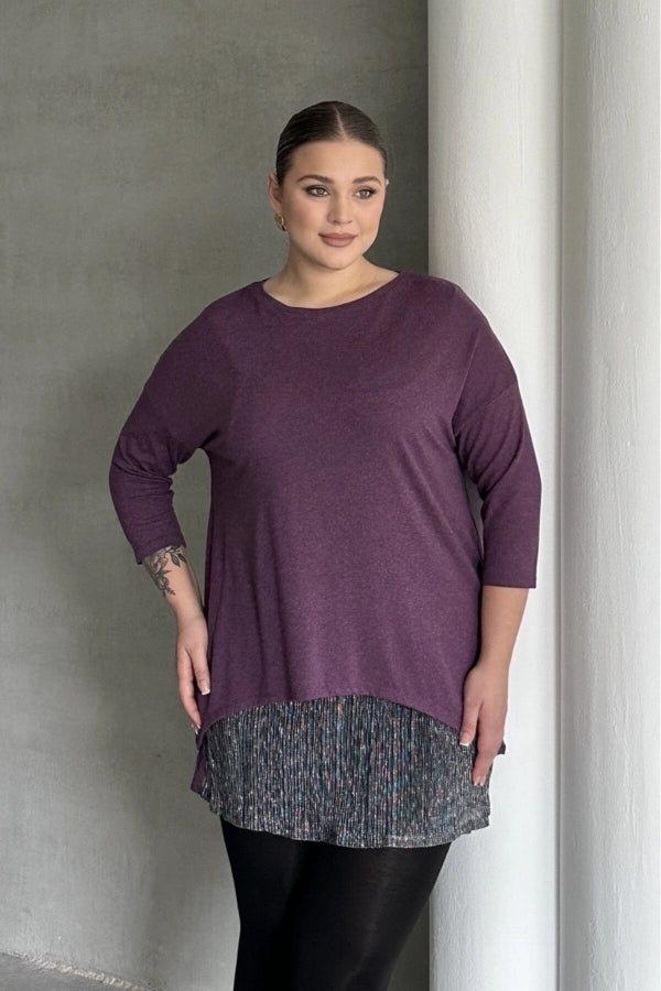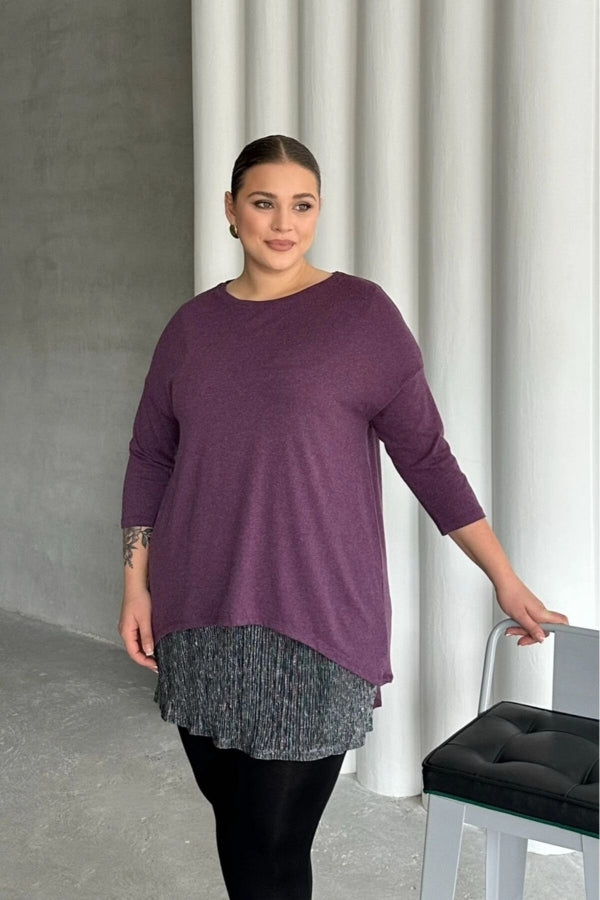Büyük Beden Eteği Tül Detaylı Uzun Kollu İnce Bluz 84-106