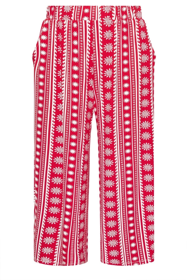 Büyük Beden Etnik Desenli Beli Lastikli Paçası Bol Pantolon 145344