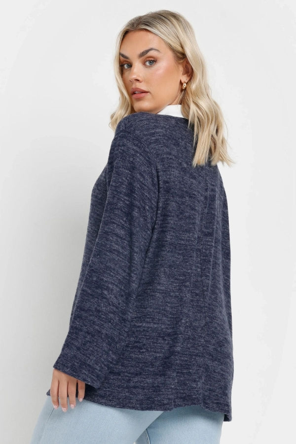 Büyük Beden Gömlek Yaka Uzun Kollu Yumuşak Dokulu Kazak 285043