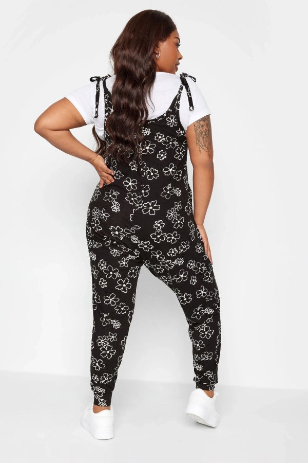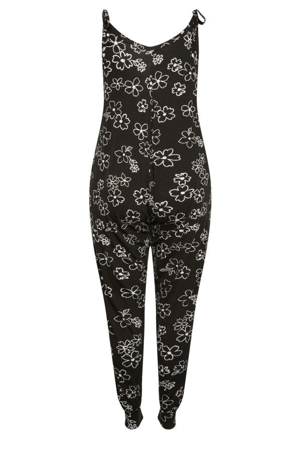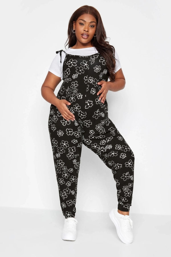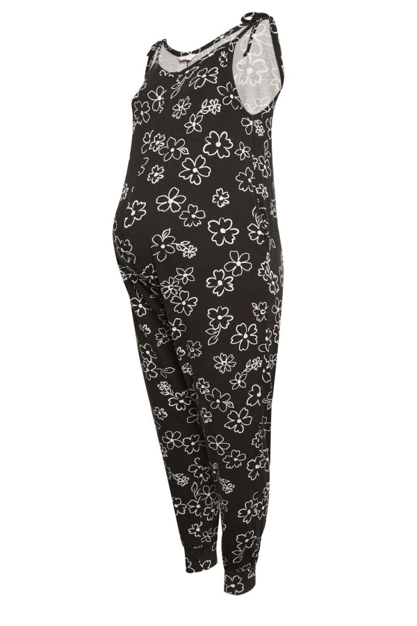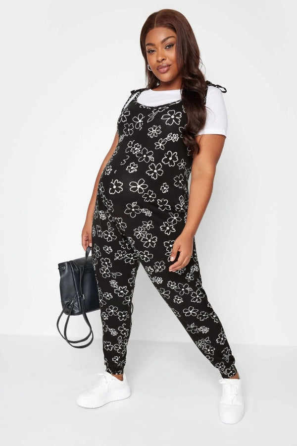 Büyük Beden Hamile Dar Paça İp Bağlama Askılı Çiçek Desenli Maxi Tulum 158433