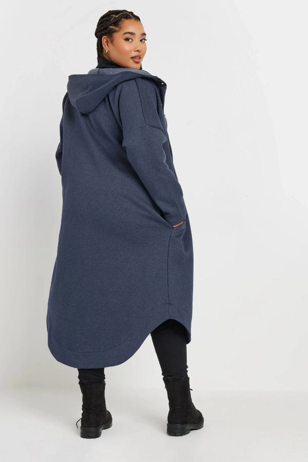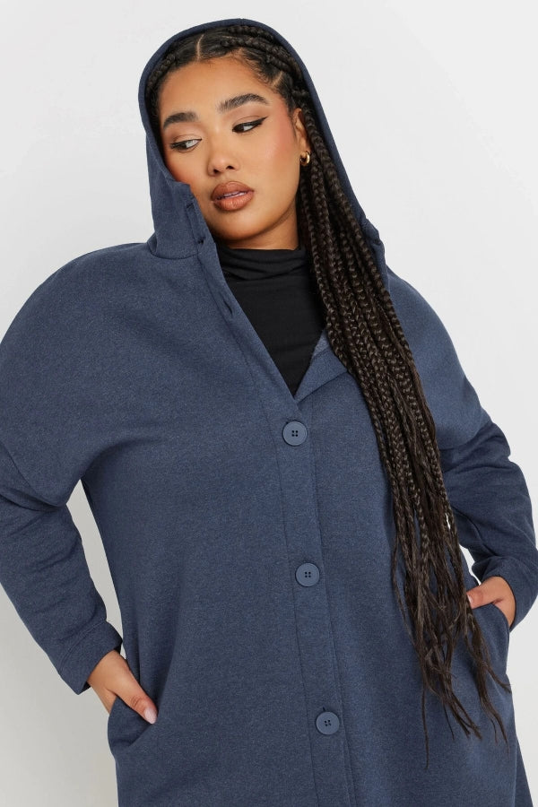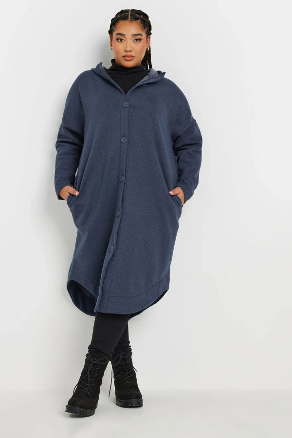 Büyük Beden Kapüşonlu Cepli Önü Düğme Kapamalı Uzun Ceket 303763