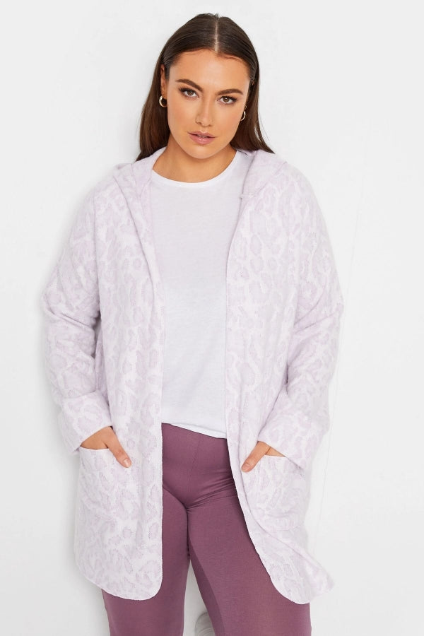 Büyük Beden Kapüşonlu Önü Kapamasız Cepli Desenli Suni Kürk Ceket 301663