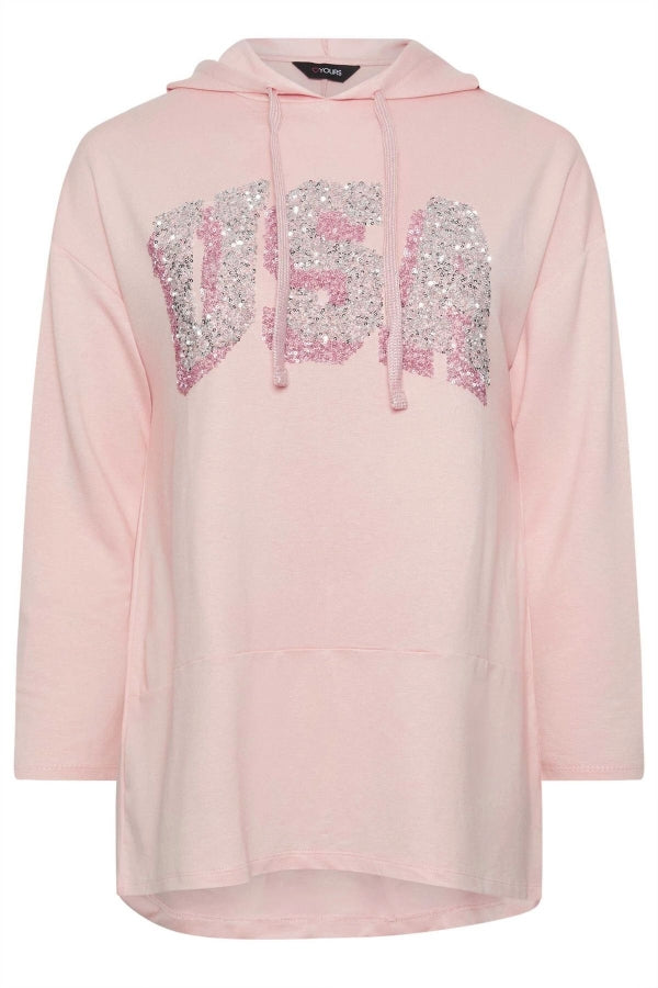 Büyük Beden Kapüşonlu Payet Detaylı Cepsiz Uzun Kollu Sweatshirt 303002