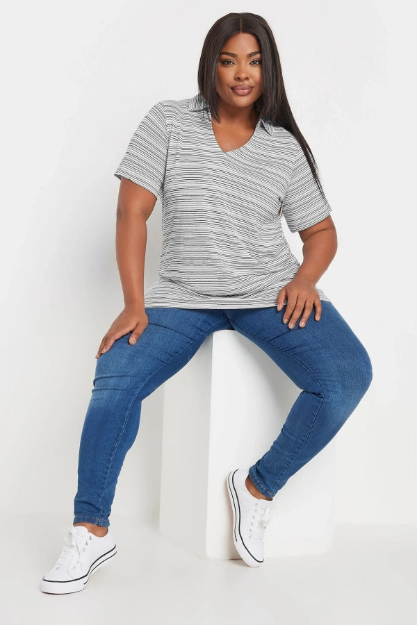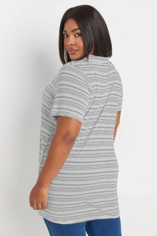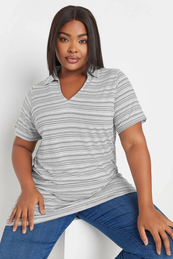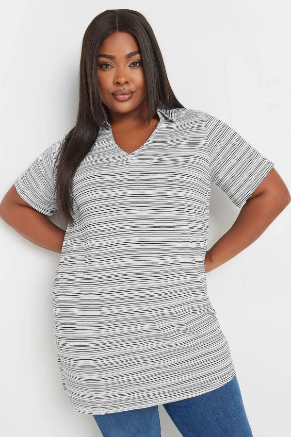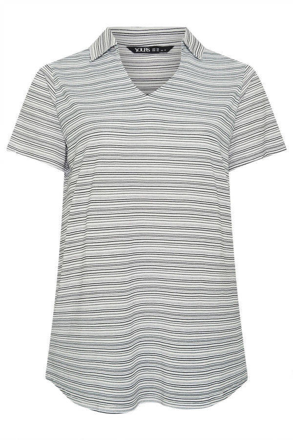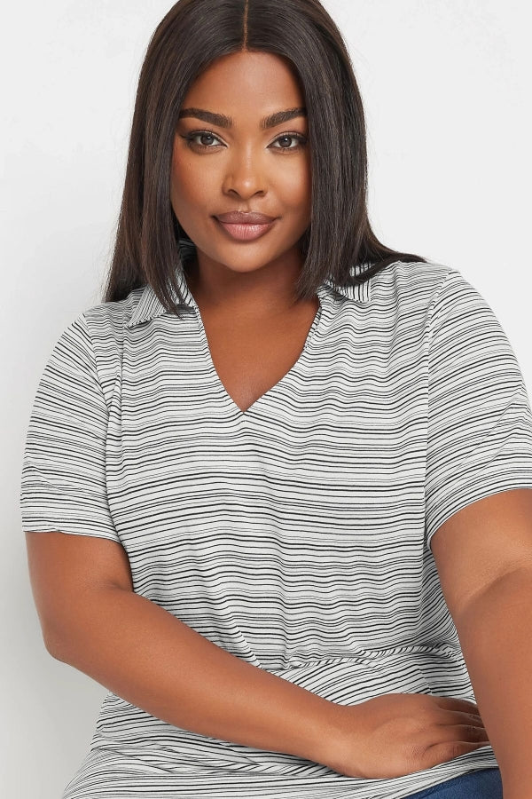 Büyük Beden Kısa Kol V Gömlek Yaka Çizgili Bluz 303436